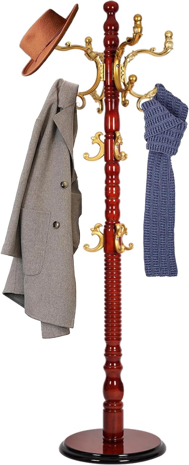 - Wider Application:The wooden coat tree is designed in a vintage style, with a simple structure and comprehensive functions. The coat rack can be placed in the hallway, living room, bedroom, office, and any corner you need.