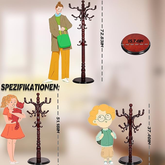- Sturdy and Stable:The wooden coat rack is carefully selected from natural birch wood. ensures stability. exquisite resin hooks with smooth lines, hard and unbreakable. coat stands for entryway smooth and free of burrs, and it can be hung without damaging clothes