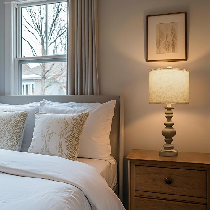 BOBOMOMO 24" Farmhouse Retro Table Lamp Set of 2, Traditional Resin Lamps for Living Room Bedroom, Vintage Bedroom Lamps with Linen Shades, Rustic Table Lamps for Living Room, Nursery, Office