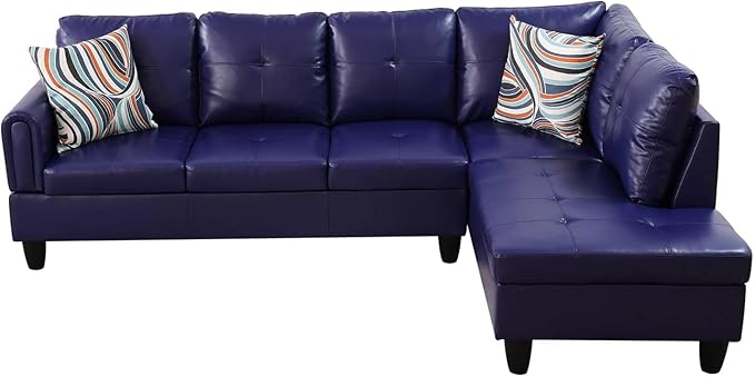 NicBex Sectional Couch 2 Pieces 66.5" L Sofa with Right Chaise Faux Leather L Shaped Cloud Couch for Living Room Furniture Sets with Cushion, Modular Sofa for Living Room & Small Apartment, Blue