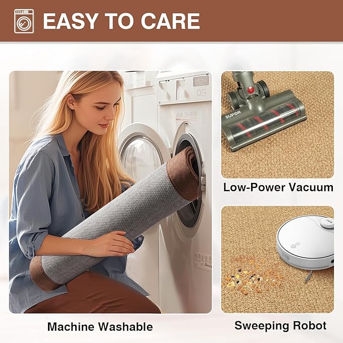 - MACHINE WASHABLE BATH MAT:Simply throw the thin bathroom rugs brown in the washing machine for a quick wash & it will be as good as new. Easy to clean & guaranteed quality, even after repeated cycles in the washing machine, the bathroom rugs will maintain its flat shape & integrity. We are committed to providing a satisfying experience. If you have any questions, please feel free to contact us.