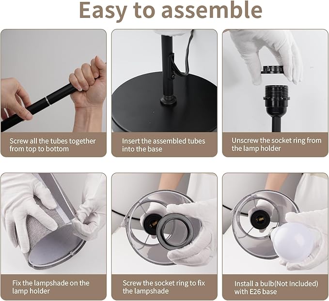 - Easy to assemble: Assembly of this pole lamp for Living room is self explanatory, you can twist the poles together, insert them in the base. The lampshade comes rolled up and then wrap it around the wire frame and close the velcro in the back.