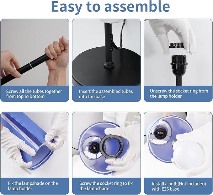 - Easy to assemble: Assembly of this pole lamp for Living room is self explanatory, you can twist the poles together, insert them in the base. The lampshade comes rolled up and then wrap it around the wire frame and close the velcro in the back.