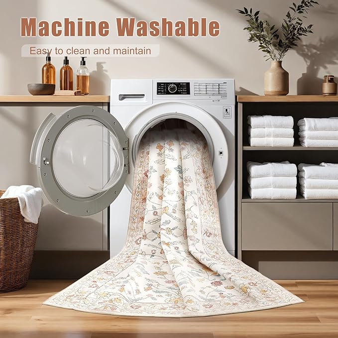 - Soft and Stain-Resistant: Featuring a plush, stain-resistant surface, this living room rugs is soft, durable, and perfect for active kids’room. It’s an excellent choice for girls bedroom, nursery, or pets, providing a cozy and safe space for playtime, nap time, or story time. The floral area rug design adds elegance while ensuring practicality for everyday use