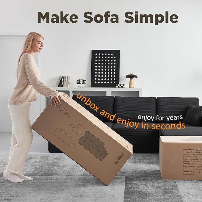 - 【No Assembly Sectional Sofa】Arrives pre-assembled, no tools needed. Just unbox, fluff cushions, and watch it expand in 72 hours—perfect for renters and quick living room upgrades