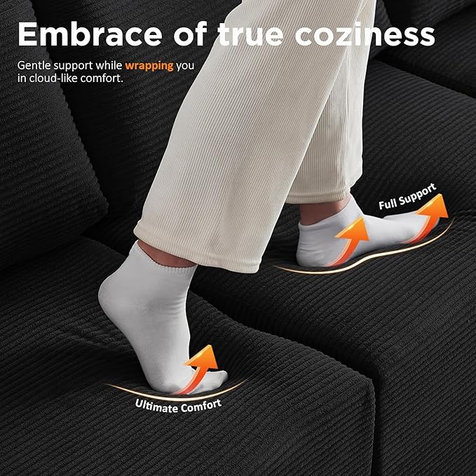 - 【Plush Corduroy Cloud Sofa】Soft, durable ribbed corduroy resists pet hair & spills. High-resilience foam keeps shape, providing cloud-like support for movies or gatherings