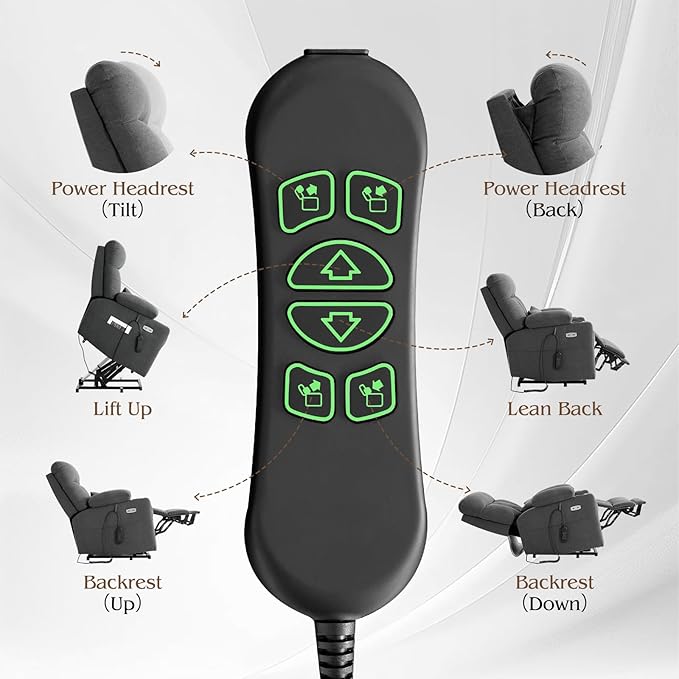 - 【Power Adjustable Headrest】The adjustable headrest provides customized comfort when sitting in an upright position, and is specially designed to allow the person leaning back to look forward - for example, to watch TV - without straining the head or neck, for a more relaxed feeling