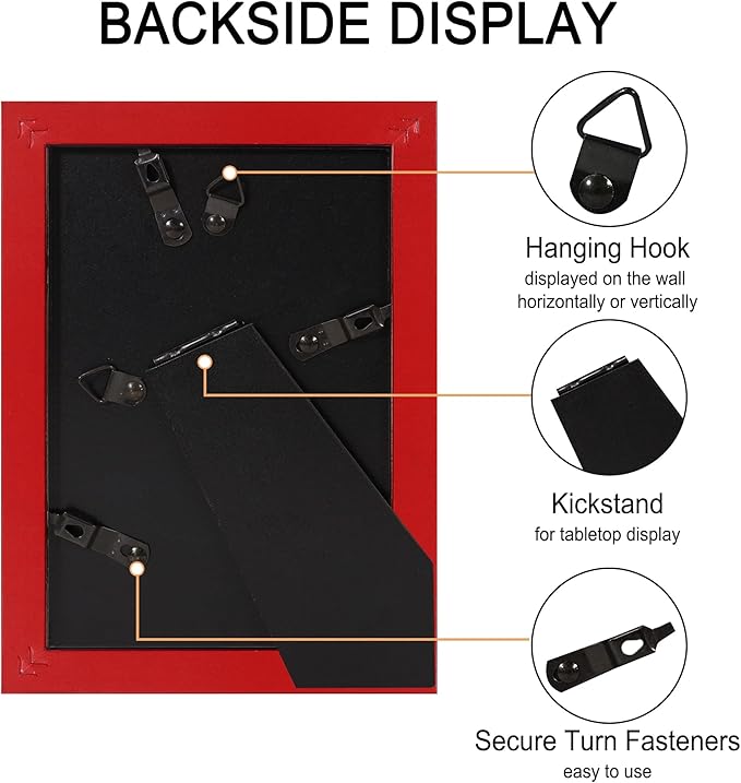 - Easy to use: The 4x6 frame features flexible rotating labels, and the spring-loaded action on the back removes the back panel without hurting your fingers. additionally, we offer accessories for easy hanging and flexible display of your photos