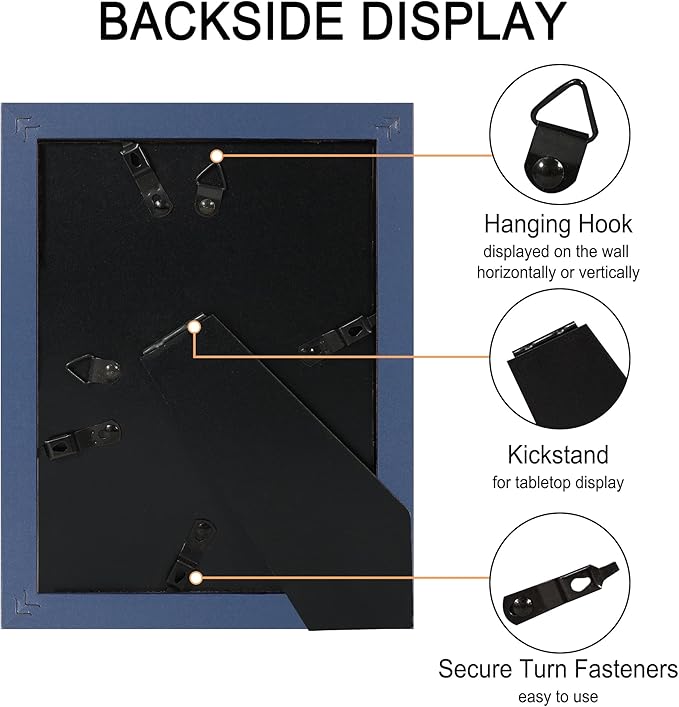 - Easy to use: The 5x7 frame features flexible rotating labels, and the spring-loaded action on the back removes the back panel without hurting your fingers. additionally, we offer accessories for easy hanging and flexible display of your photos