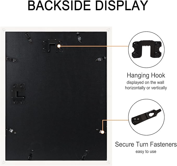 - Easy to use: The 11X14 frame features flexible rotating labels, and the spring-loaded action on the back removes the back panel without hurting your fingers. additionally, we offer accessories for easy hanging and flexible display of your photos