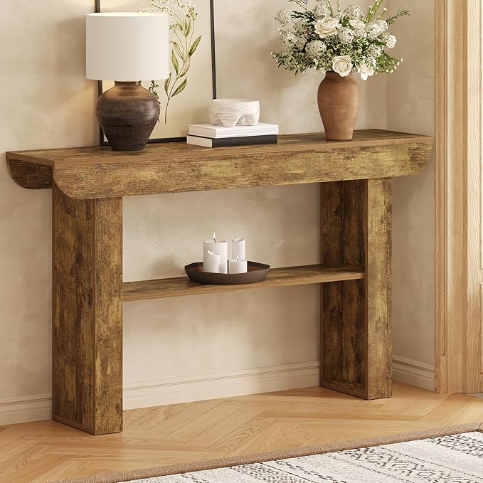 - 【Sturdy and Long-Lasting】Constructed from engineered MDF wood, this console table boasts a scratch-resistant, wood-like finish that ensures exceptional durability while adding a touch of rustic charm.