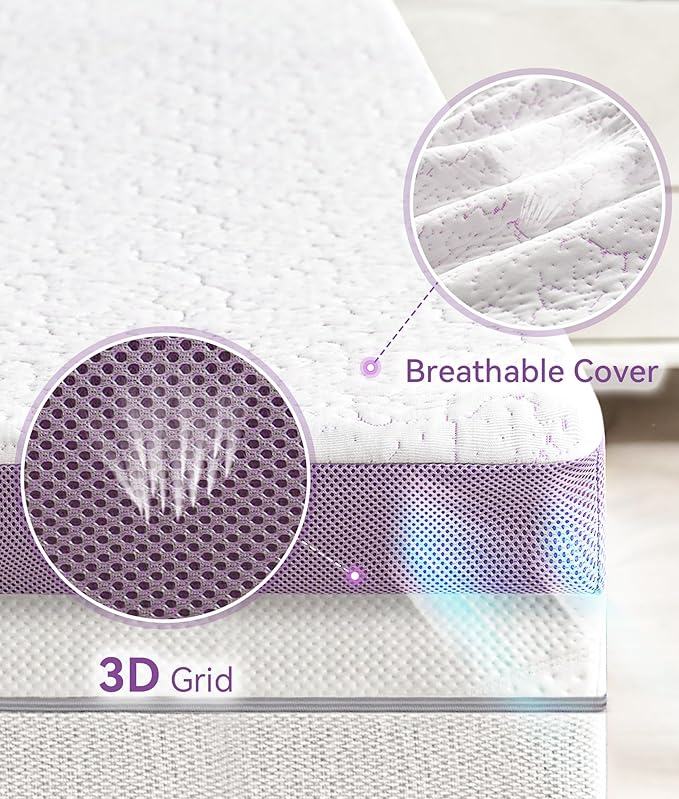- [Cooling & Breathable Design]: Infused with cooling gel, the memory foam layer helps regulate body temperature, while the ventilated cover and side air holes promote airflow. Say goodbye to night sweats and enjoy a cool, comfortable sleep all night long. Made with skin-friendly, durable, and odor-free materials for a safe and restful experience.