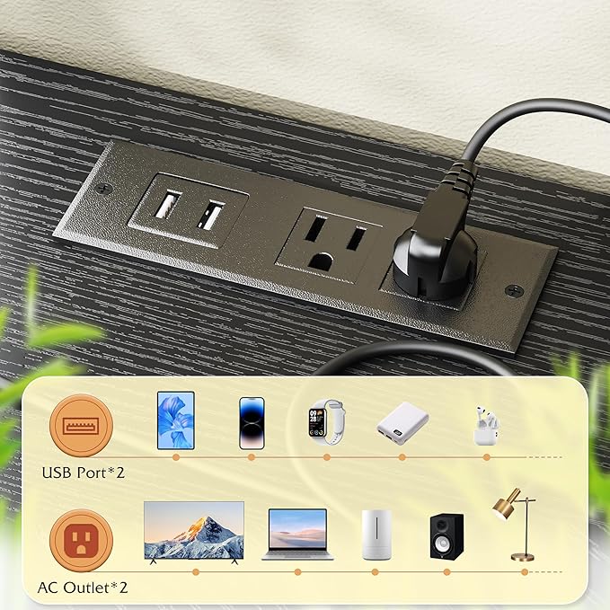 - 【TV Stand Dresser with Built-in Charging Station】This Entertainment Center designed specifically for the living room integrates 2 AC power outlets and 2 ports. The cleverly hidden port is dedicated to powering the LED lights, freeing up the other ports to serve more devices such as TV, Wi-Fi router, gaming equipment, and fan, getting rid of power anxiety. The 4.9-feet power cord flexibly adapts to various space layouts, allowing you to place it at will without any restriction