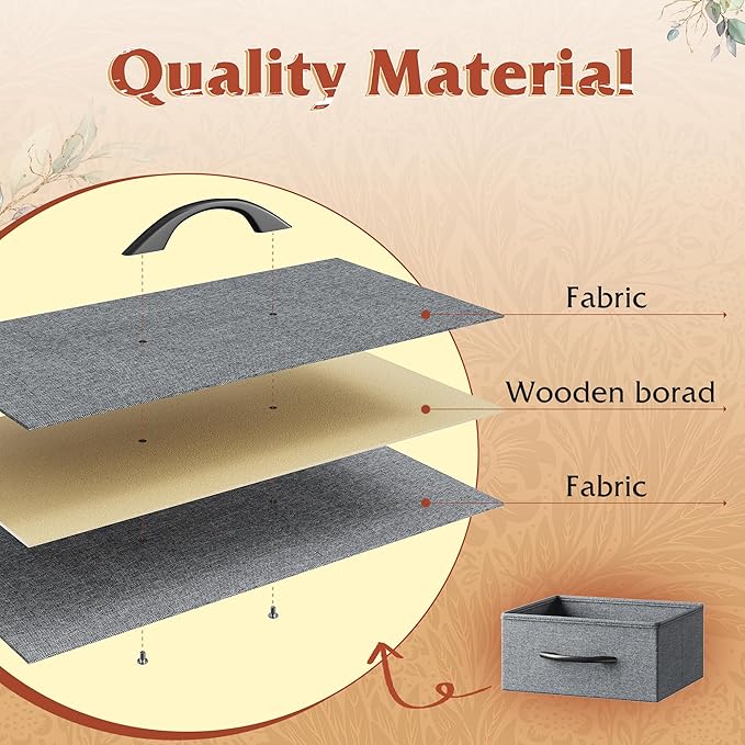 - 【Dresser TV Stand with Integrated Storage and Display】TV stand dresser has a spacious tabletop with a size of 43.3"W x 11.8"D, which can stably hold a TV within 50 inches. The unique 5 fabric drawers in two different sizes, combined with an open shelf, provide a refined classification storage solution for various items such as CDs, exquisite ornaments, daily T-shirts, and soft blankets. This Entertainment Center makes clutter a thing of the past