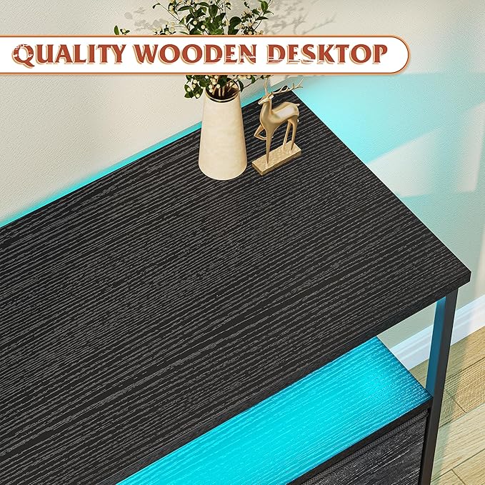 TV Stand Dresser with LED Lights & Power Outlets, Entertainment Center for 50" Inch TV, 5 Drawers TV Stand for Bedroom Dresser with Shelves for Living Room, Sturdy Metal Frame, Black