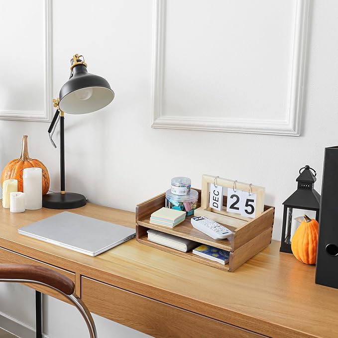 DRASTAR Paper Organizer Letter Tray, 2 Packs Acacia Wooden Stackable Letter Tray, A4 File Sorter Desk Organizer, Desk Organizers and Accessories for Home Office Supplies