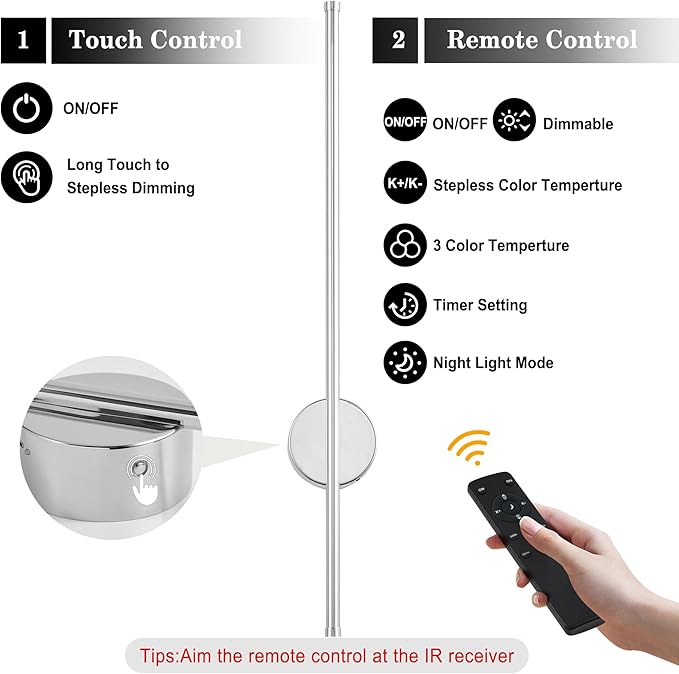 - CONTROL AT YOUR FINGERTIPS: This battery operated modern wall sconce equipepd with a remote control to easily change the setting without getting up. You can also manually touching the light button to directly control the color temperature and brightness