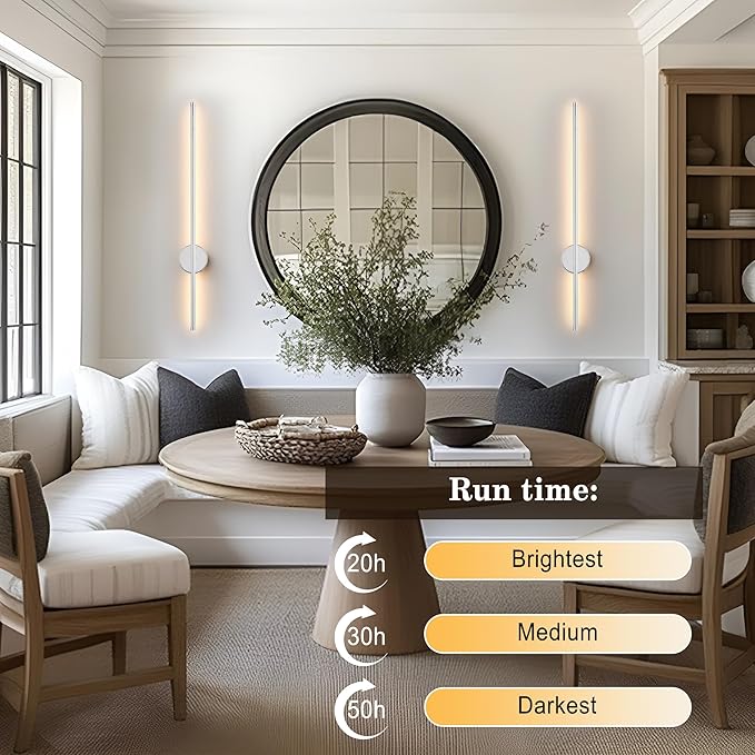- EXQUISIT DECORATION: Combine modern style with multi functionality, the battery operated led wall sconce is ideal for living room, bedroom, entryway, hallway, and dinning room, makes the room seem intimate and cozy, enhaces the overall aesthetics