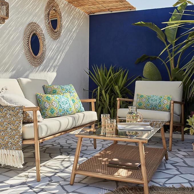 - 🎁 【PACKAGING】: Comes with two 12”x20” (30.48x50.8cm) stylish outdoor lumbar pillows with inserts, vacuum-packaged. Please give it some time to expand to their proper size.