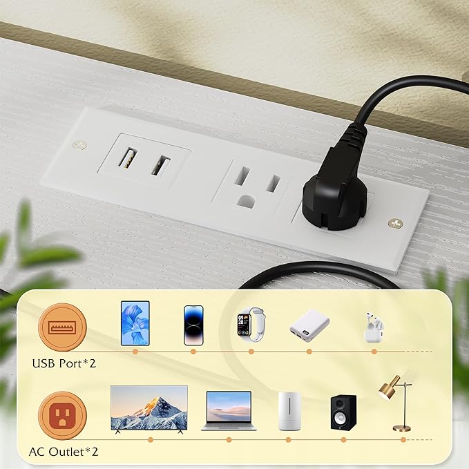 - 【TV Stand Dresser with Built-in Charging Station】This Entertainment Center designed specifically for the living room integrates 2 AC power outlets and 2 ports. The cleverly hidden port is dedicated to powering the LED lights, freeing up the other ports to serve more critical devices such as TV, Wi-Fi router, gaming equipment, and fan, getting rid of power anxiety. The 4.9-feet power cord flexibly adapts to various space layouts, allowing you to place it at will without any restriction