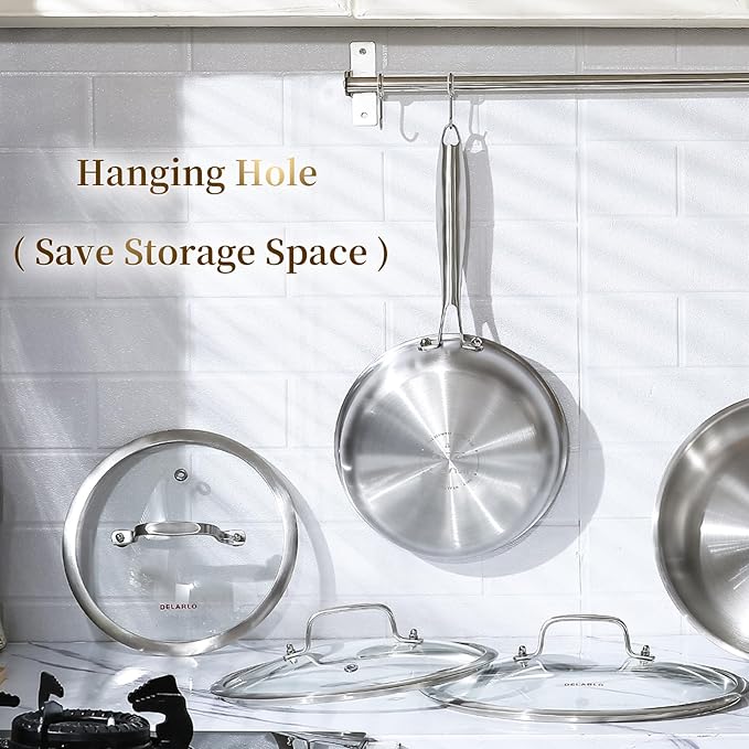 - 【Efficiently & Energy Saving】In Delarlo, Energy saving is not just a slogan but truly happened! Delarlo Tri-Ply Stainless Steel cookware Heats quickly and spreads heat evenly, will spend 20% Gas or electricity less that you have spend in cooking before.