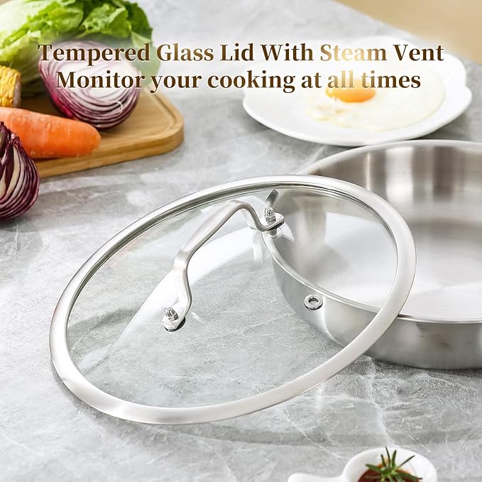 - 【Cool Handle and Glass Lid】The hollow handle design remains cool to the touch while cooking, providing a comfortable grip. Tempered Glass Lid With Steam Vent Monitor your cooking at all times