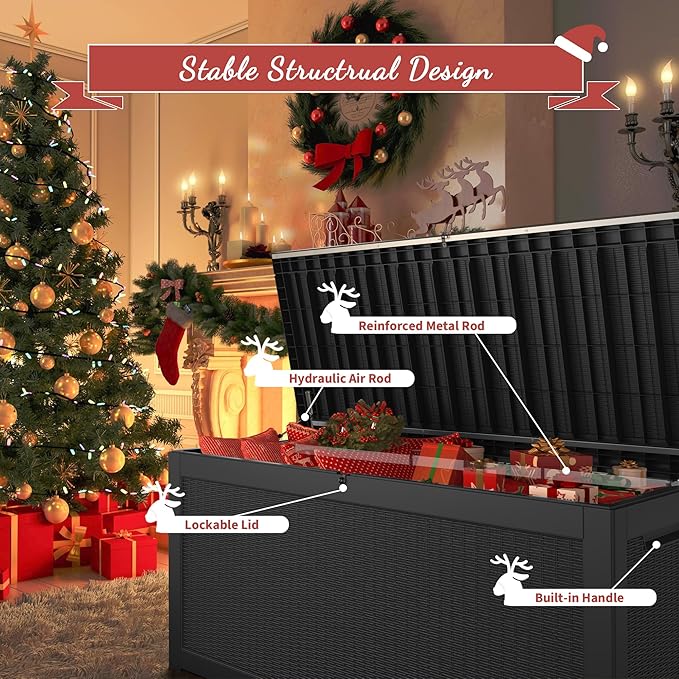 - đïžăConvenient Hydraulic Lid SystemăFeaturing a hydraulic piston system, the lid of this outdoor storage bin opens effortlessly and closes softly. The user-friendly design ensures safe and smooth operation, making it ideal for everyday use.