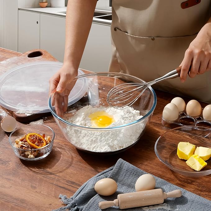 - 【Sleek and Compact Storage】: With its lid securely in place, this large glass mixing bowl doubles as a storage container, keeping your food fresh