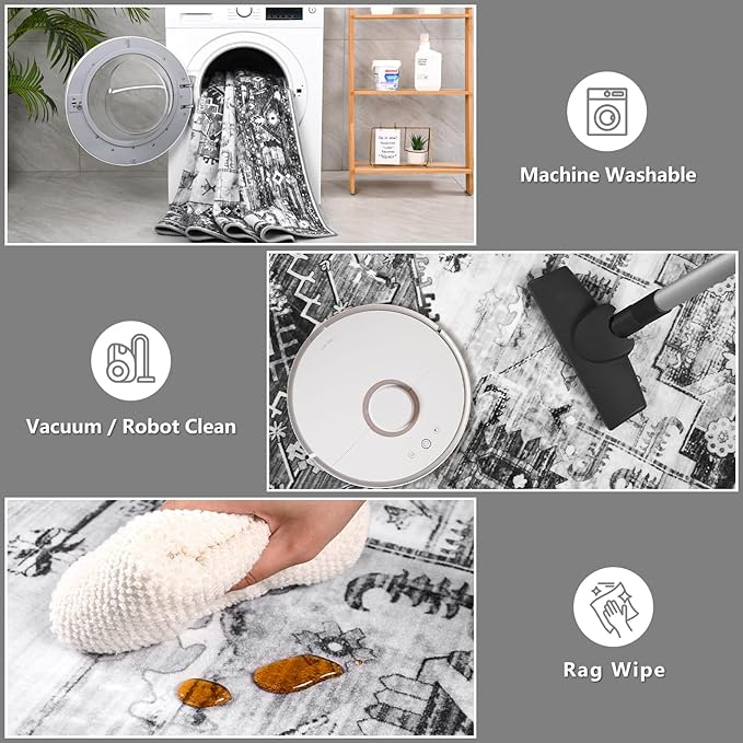 - 【Machine Washable Area Rug】Our low-pile area rug can be easily cleaned with rags and vacuums. For deep cleaning, machine wash with cold water and air dry. You'll get a clean, pretty carpet.