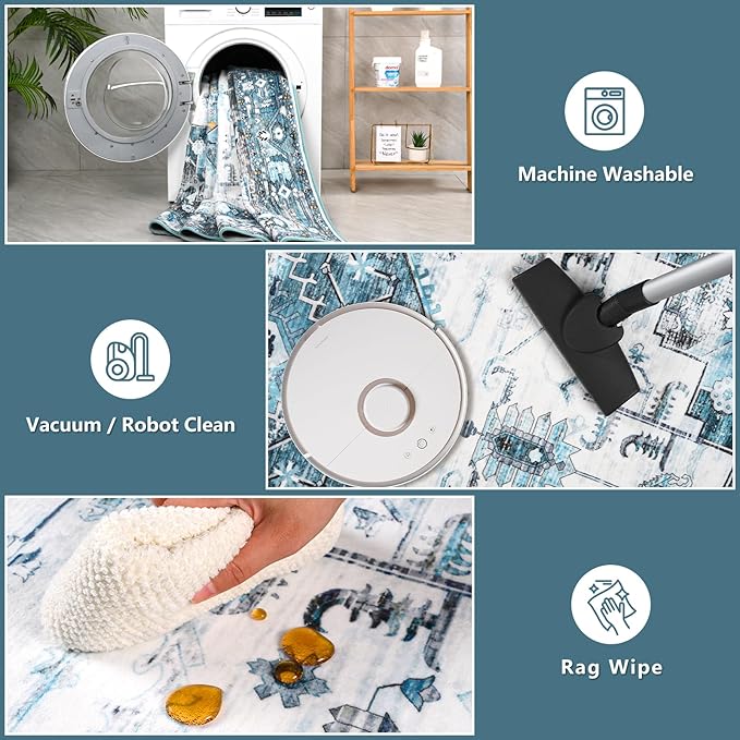 - 【Machine Washable Area Rug】Our low-pile area rug can be easily cleaned with rags and vacuums. For deep cleaning, machine wash with cold water and air dry. You'll get a clean, pretty carpet.