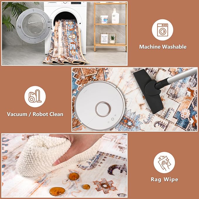 - 【Machine Washable Area Rug】Our low-pile area rug can be easily cleaned with rags and vacuums. For deep cleaning, machine wash with cold water and air dry. You'll get a clean, pretty carpet.