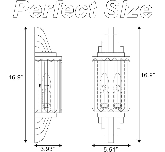 - 【E12 Bulb Base】The vintage gothic wall sconce use two E12(Max 60W) bulb. Compatible with incandescent, CFL, LED bulbs (Bulbs NOT Included), and the 2-light glass wall lamp compatible with dimmers and dimmable bulbs (additional installation required, not included)