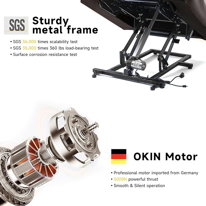 - 【Adjustable to Any Position】Power Lift Recliner Adjust to Any Angle You Need(45°-165°), Our lift chairs are equipped with a lift remote control, which Avoids the issue of not being able to reach the lift button on the armrest when lying down. Additionally, Based on SGS testing, Button replacing the remote control resulted in a 72% decrease in chair malfunction rates.
