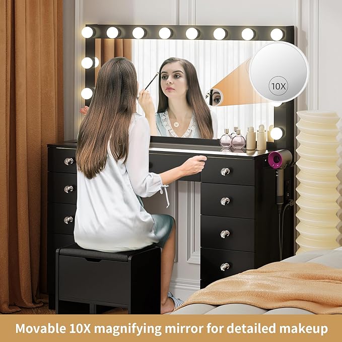 - Super Storage: Our vanity desk features 11 large drawers and spacious desktop to store all your beauty essentials.