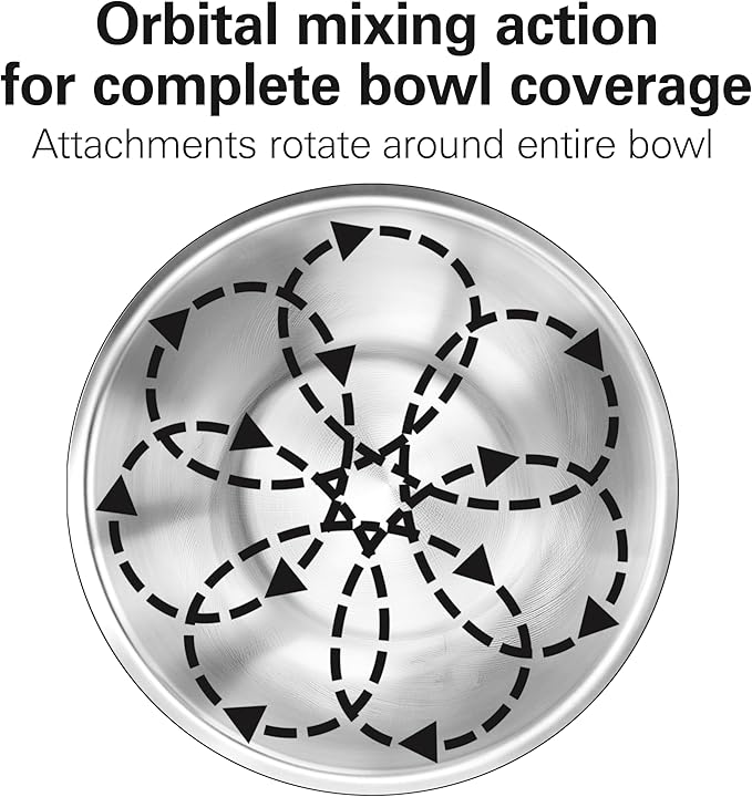 - ORBITAL MIXING ACTION FOR COMPLETE BOWL COVERAGE: The electric mixer has the same orbital mixing action as the higher-priced brands. The attachments rotate around the entire bowl.