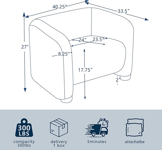 - 《40" Oversized Living Room Chairs》 Overall size 40.25*33.5*27" Combining classical and modern aesthetics, this accent chair boasts a sleek and timeless design that enhances any space in your home . Provide you timeless comfort with inner width 23.5" x seat depth 24 " .