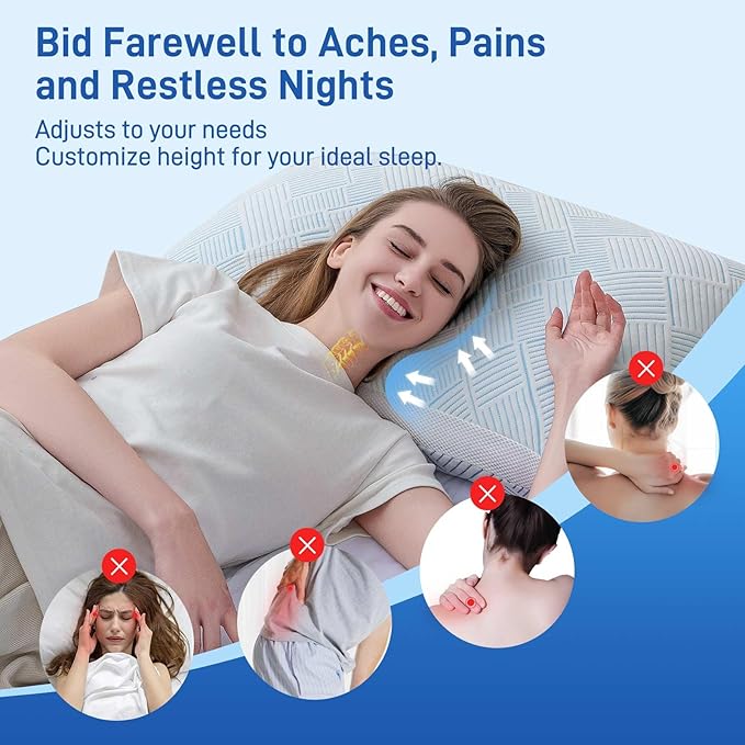 - [DEEP SLEEP, LASTING COMFORT] Our shredded memory foam soft pillow adapts to your head and neck’s natural curves, providing optimal alignment and support for all-night comfort.