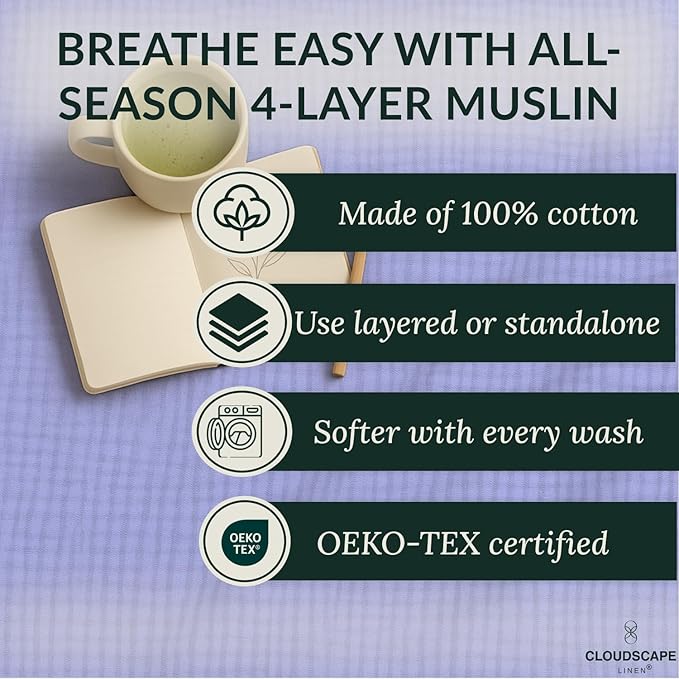 - LUXURIOUSLY SOFT & COZY – Made from 100% cotton, this muslin throw blanket features 4 layers of plush softness for a cloud-like embrace. Perfectly sized at 50" x 70", it’s ideal for beds, couches, or snuggling up anywhere.