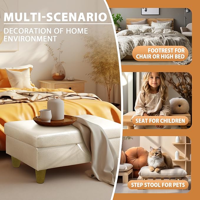 - OTTOMAN BENCH: This versatile storage ottoman doubles as a comfortable bench, perfect for entryways, living rooms, or bedrooms. Designed to blend style with functionality, it provides both extra seating and hidden storage, making it a practical and stylish solution for any space.