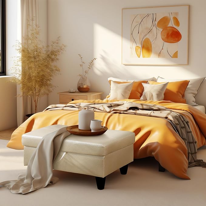 - PREMIUM MATERIALS: This storage ottoman features a thick foam cushion for added comfort. Built with a sturdy solid wood frame and durable plastic feet, it offers long-lasting quality while protecting your floors from scratches. The easy-to-clean faux leather surface gives it a sleek, modern look, and the smooth faux leather lid adds an extra layer of comfort for sitting. Perfect for any room, this ottoman combines style, durability, and functionality.