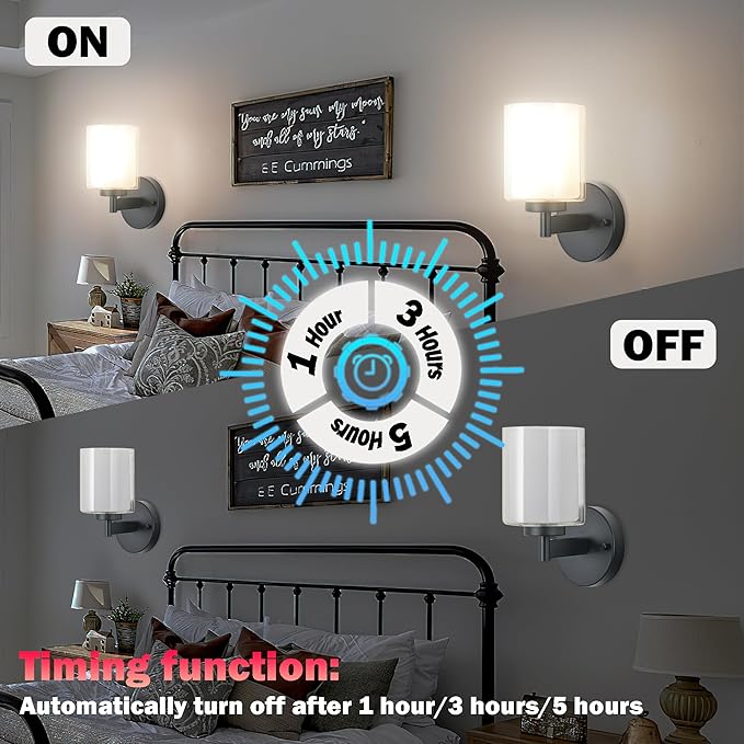 - Sconces wall lighting battery operated with Remote Control: The rechargeable bathroom vanity light is not only touch-controlled, but also comes with a full-featured remote control, making it more convenient for you to adjust the lighting from anywhere in the room. Additionally, the battery operated sconces include a timer function that can be preset for 1, 3, or 5 hour, ensuring they automatically turns off for added convenience and energy efficiency.