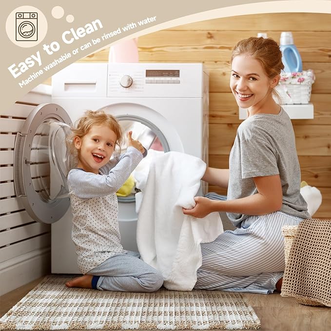 - Upgrade Non-Slip Backing: Safety comes first with our upgraded mats. The transparent hot melt adhesive backing sticks to smooth surfaces like glue, keeping the bath rug firmly in place. No more worrying about slips or curls—just safe, steady steps