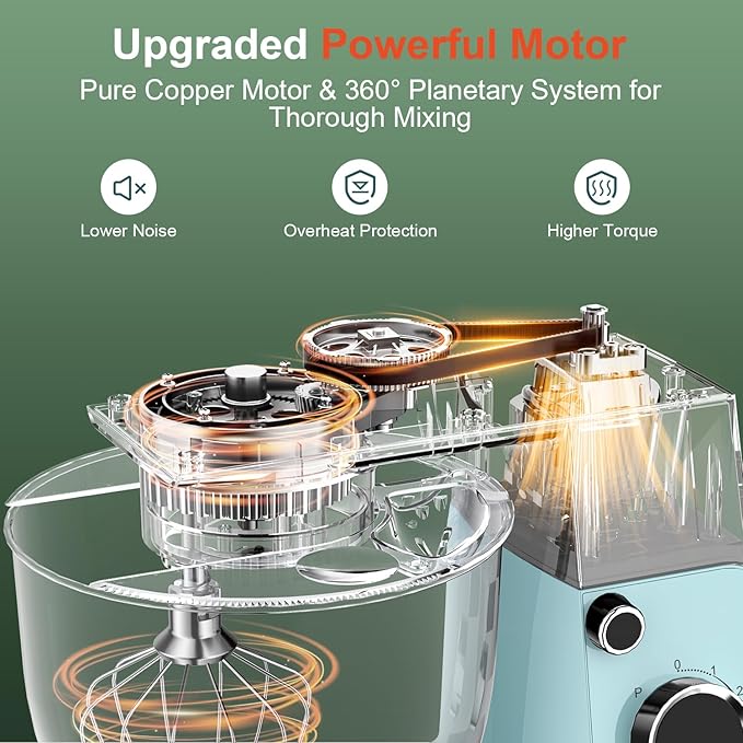 - Durability and Style - This lastest Howork stand mixer equips with 300W high performance pure copper motor and sturdy ABS housing. kitchen mixer practices a combination of classical and popular,which can not only meet the various aesthetic needs but works more perfectly and effectively in your kitchen.