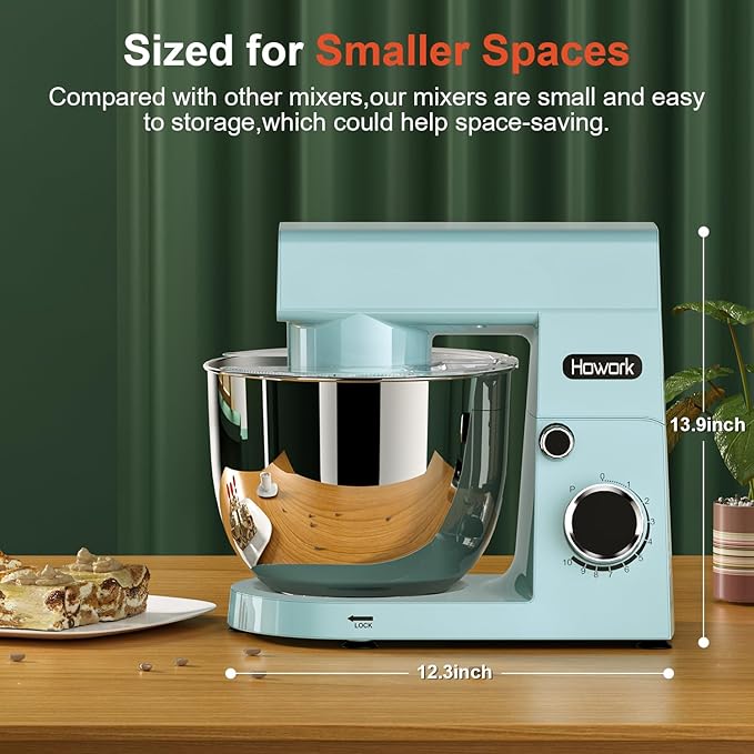 HOWORK Stand Mixer,10+p Speeds With 5.5QT Stainless Steel Bowl,Dough Hook, Wire Whip & Beater,for Most Home Cooks,Blue