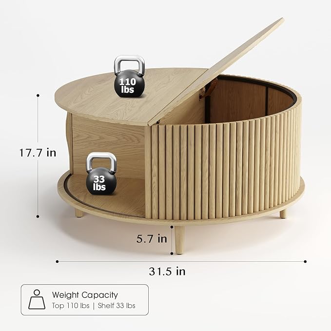 - Stylish and Practical: The round coffee table features lift top design,allowing you to work,write or dine comfortably on the sofa.Its mid-century modern style adds a retro feel to any space