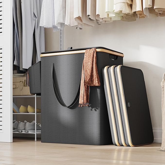 - 【Sturdy Hamper with Lid】 The main materials are 600D reinforced oxford cloth and 8mm fiber rod, which makes our clothes hampers for laundry sturdy and stable , not easy to pour, and more secure and comfortable during use. Our hamper comes with a lid, practical and beautiful, making sure no clutter of clothing in sight until regular laundry days