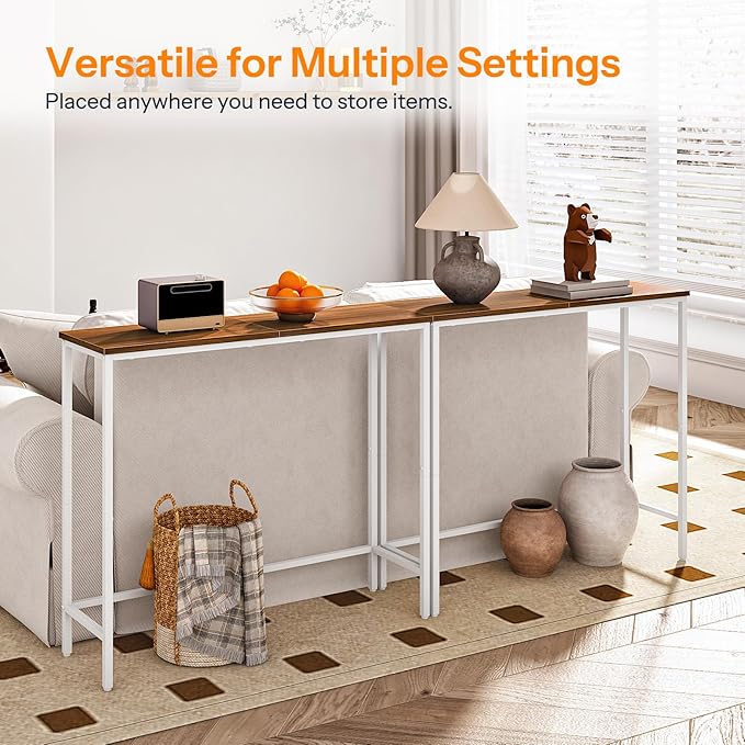 - Durable and Sturdy: The console table top and wooden shelves adopt quality particleboard, which ensures a long time use. The sturdy metal frame and 4 adjustable feet ensure stable use of the console table on floors that are not 100% flat