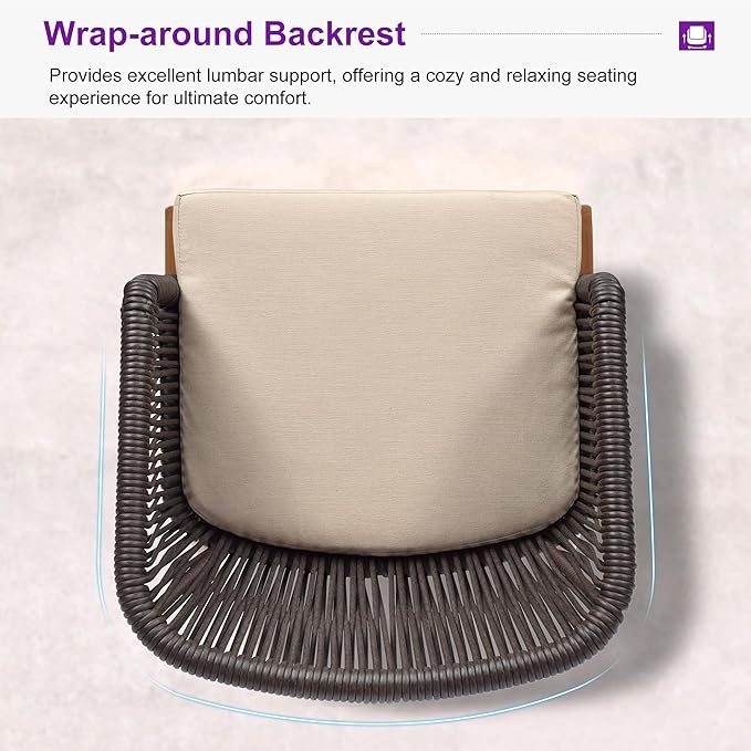 - Aluminum Frame: Finished with teak powder coating, this patio table and chairs set not only provides a stylish look but also features rust resistance and is solid enough to withstand all weather for years of use.