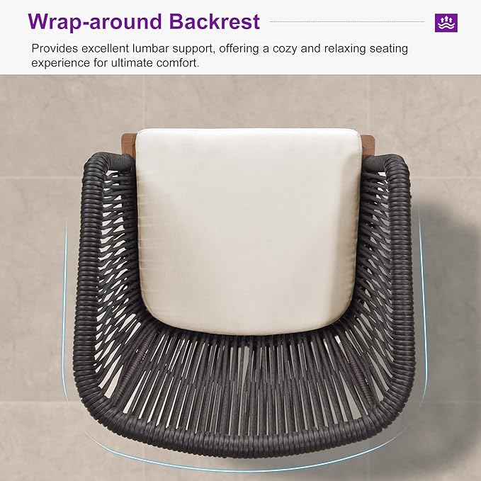 - Aluminum Frame: Finished with teak powder coating, this outdoor dining set not only provides a stylish look but also features rust resistance and is solid enough to withstand all weather for years of use.