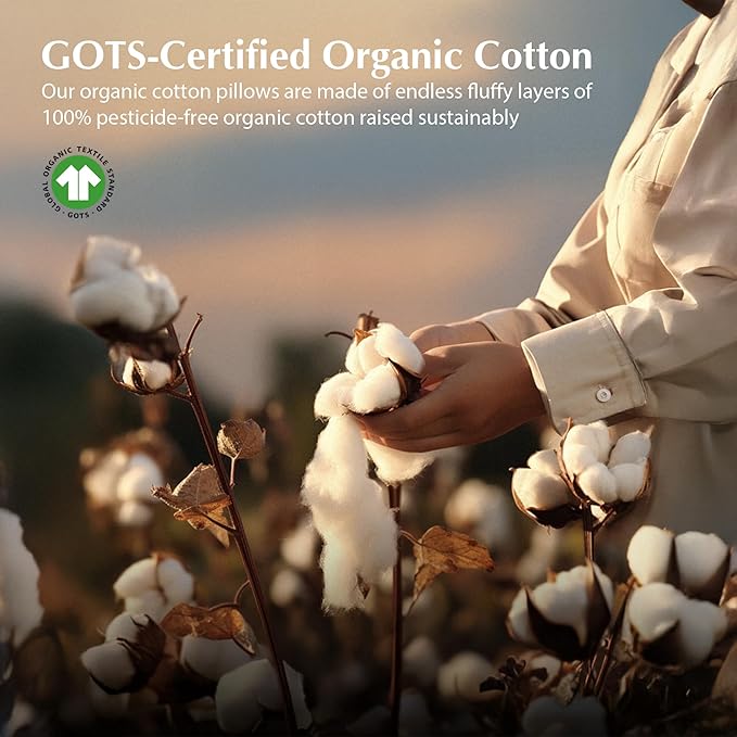 - Gentler on Your Skin and The Planet: The Pillow cover is made with natural & GOTS certified organic cotton. It is designed to be highly breathable with soft touch. Our cotton is natural in color and free of unnatural dyes. It also provides great moisture-wicking properties. This bed pillow is not white but rather an all natural ivory color.